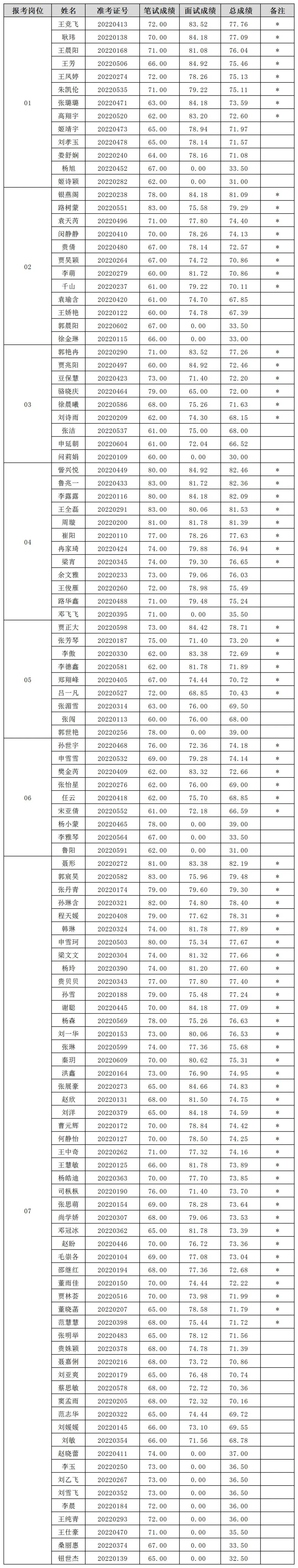 (国家)新乡经济技术开发区2022年公开招聘劳务派遣工作人员总成绩及进入体检人员名单(“*”为进入体检人员名单)